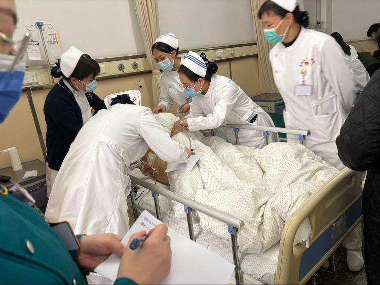 了解患者基本情況后,王爽一行來到病房,責(zé)任護(hù)士對患者進(jìn)行了詳細(xì)的體格檢查。大家對患者進(jìn)行溫情溝通,評估患者的飲食、疼痛度,查看患者情況及各項(xiàng)護(hù)理措施落實(shí)情況,對存在的疑難問題進(jìn)行了現(xiàn)場指導(dǎo)。