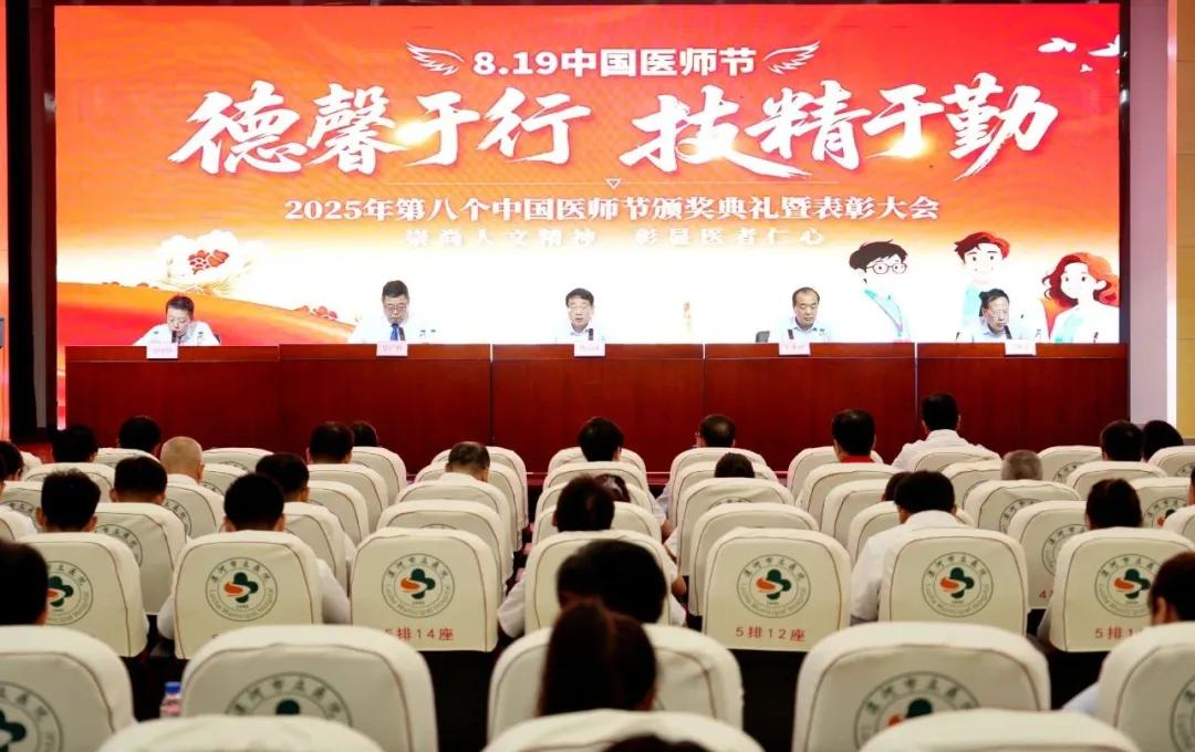 2025年8月19日是第八個(gè)中國醫(yī)師節(jié),主題是“德馨于行 技精于勤”。為慶祝第八個(gè)中國醫(yī)師節(jié),向廣大醫(yī)師致以崇高的敬意,展示優(yōu)秀醫(yī)師的風(fēng)采,8月17日上午,漯河醫(yī)專二附院(漯河市骨科醫(yī)院、漯河市立醫(yī)院)在門診樓501會(huì)議室舉辦慶祝第八個(gè)中國醫(yī)師節(jié)頒獎(jiǎng)典禮暨表彰大會(huì)。院領(lǐng)導(dǎo)柴運(yùn)洪、王齊超、吳廣良、曹鵬克、劉國鋒出席會(huì)議,全院中層干部及醫(yī)師代表參加。