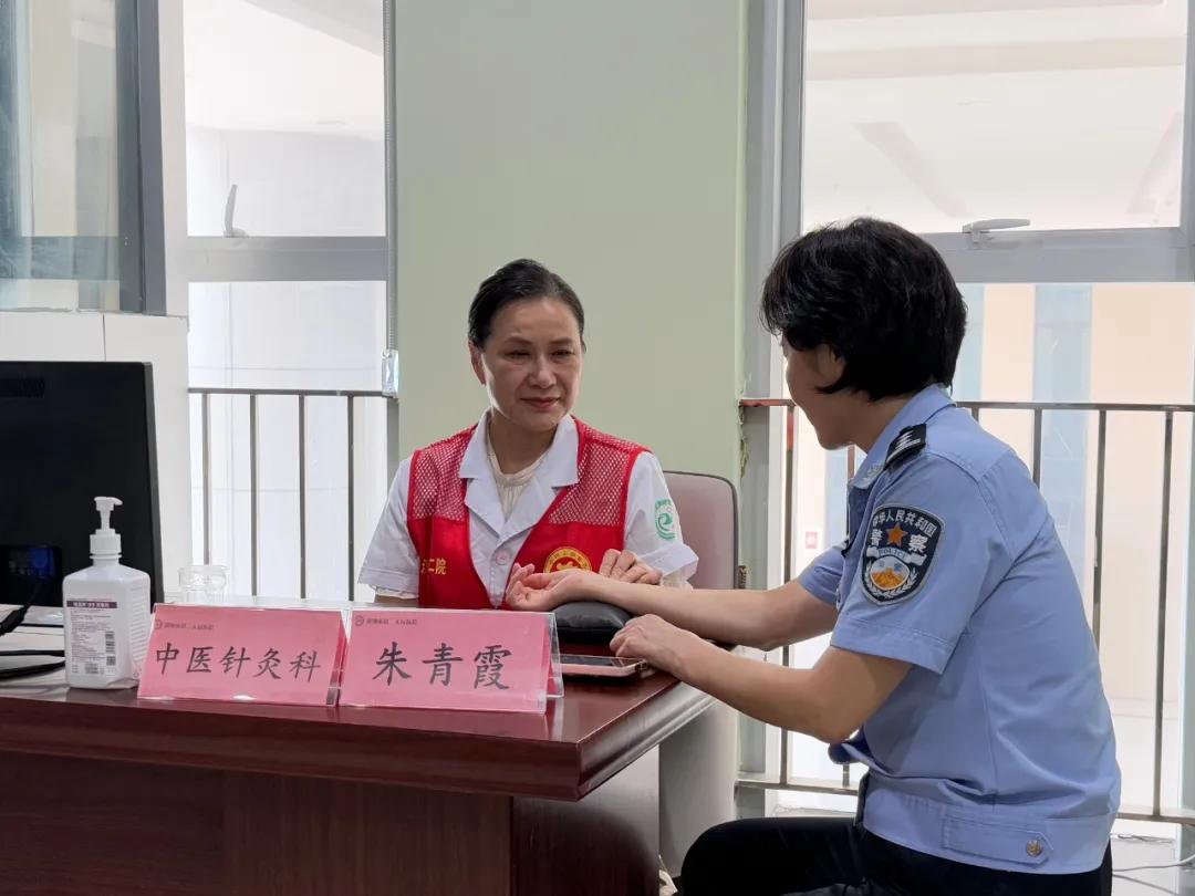 8月18日下午,市二院中醫(yī)針灸科主任朱青霞帶領10余名科室專家、志愿者走進市公安局,開展專場義診活動。作為醫(yī)院“中醫(yī)藥文化走進機關(guān)”系列活動的重要一環(huán),此次服務精準對接公安民警輔警的職業(yè)健康需求,將中醫(yī)特色診療送到平安守護一線。