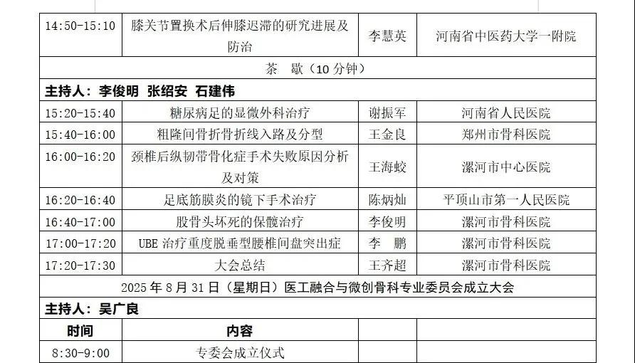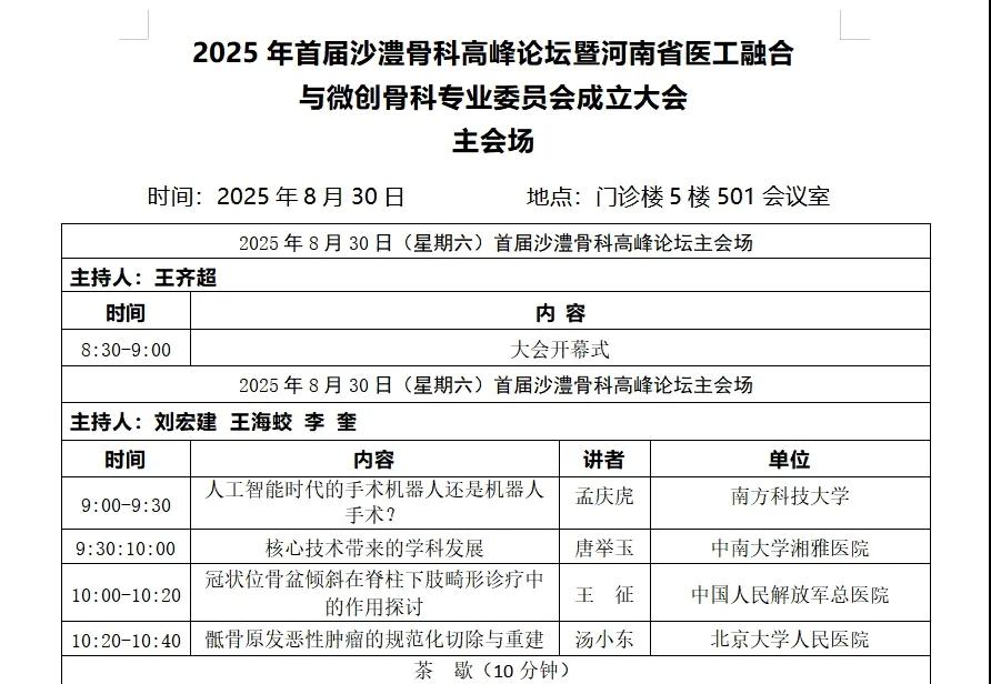 漯河市骨科醫(yī)院: 8月30日-31日,首屆沙澧骨科高峰論壇暨河南省物理醫(yī)學(xué)學(xué)會醫(yī)工融合與微創(chuàng)骨科專業(yè)委員會成立大會誠邀您的蒞臨!