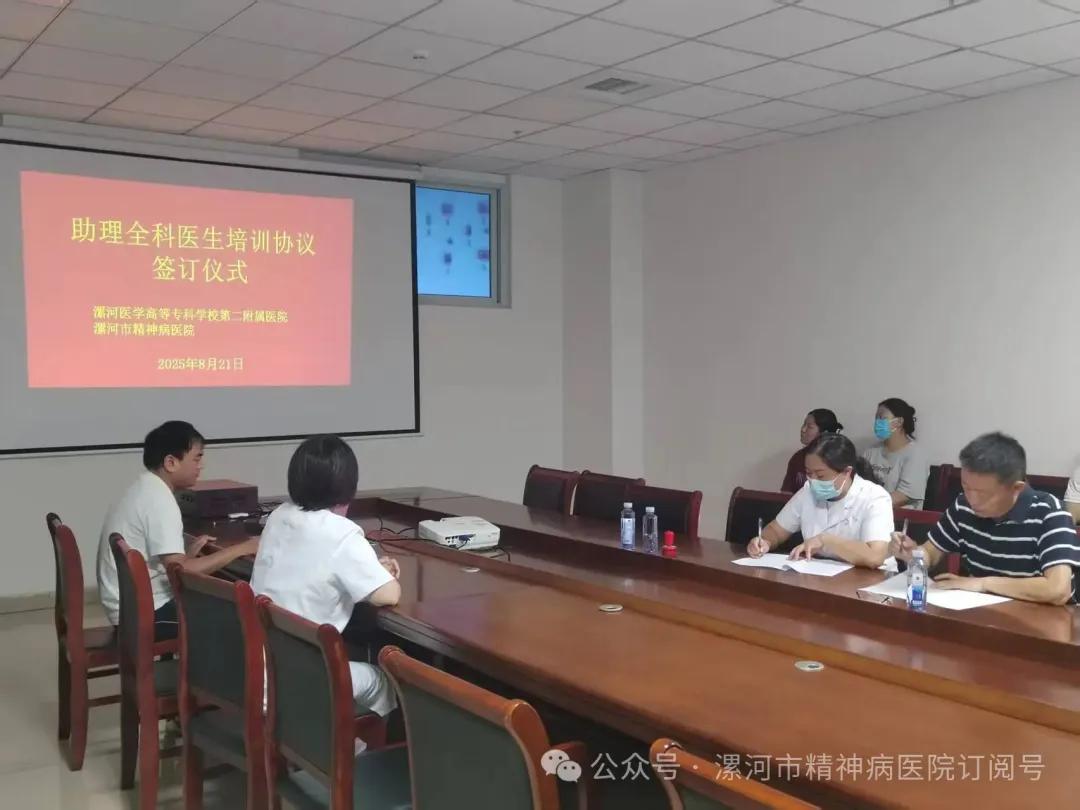 8月21日,漯河醫(yī)學(xué)高等專科學(xué)校第二附屬醫(yī)院劉國(guó)鋒書記及相關(guān)負(fù)責(zé)人帶領(lǐng)30余名助理全科醫(yī)生到漯河市精神病醫(yī)院開展參觀學(xué)習(xí)活動(dòng)?,F(xiàn)場(chǎng)簽訂助理全科醫(yī)生培訓(xùn)合作協(xié)議,共同搭建理論與實(shí)踐相結(jié)合的學(xué)習(xí)平臺(tái)。