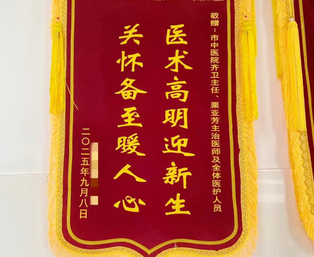 一面錦旗,贈給婦產(chǎn)科主任齊衛(wèi)、主治醫(yī)師栗亞芳及婦產(chǎn)科團隊。此前,產(chǎn)婦因超預產(chǎn)期且羊水過少,由栗亞芳醫(yī)生緊急收住入院。從接診起,栗醫(yī)生便持續(xù)給予產(chǎn)婦心理安撫,緩解產(chǎn)婦焦慮。入院后齊主任和栗醫(yī)生全面評估產(chǎn)婦的綜合情況決定為其終止妊娠。產(chǎn)婦發(fā)動宮縮后,栗醫(yī)生全程陪同產(chǎn)程,指導用力技巧,助力其順利陰道分娩。因新生兒受羊水三度污染需轉(zhuǎn)兒科治療,栗醫(yī)生每日主動對接兒科、反饋寶寶情況,同時指導產(chǎn)婦產(chǎn)后飲食、運動、排奶、暖心安撫產(chǎn)婦,現(xiàn)寶媽和寶寶恢復良好,產(chǎn)婦和家屬都很感激,特送錦旗表示感謝!