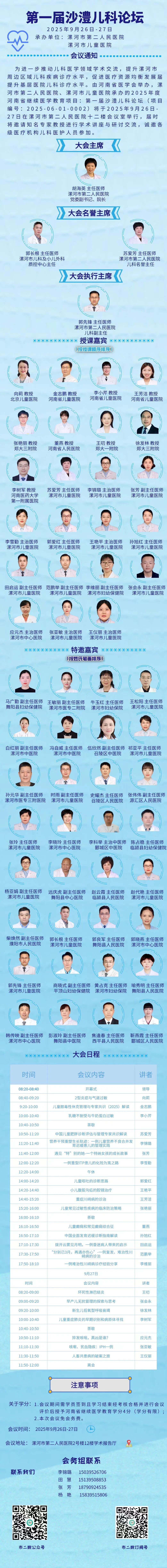 為進(jìn)一步推動兒科醫(yī)學(xué)領(lǐng)域?qū)W術(shù)交流,提升我市及周邊區(qū)域兒科疾病診療水平,促進(jìn)醫(yī)療資源均衡發(fā)展,提升基層醫(yī)院兒科診療水平。由河南省醫(yī)學(xué)會主辦,漯河市第二人民醫(yī)院、漯河市兒童醫(yī)院承辦的2025年度河南省繼續(xù)醫(yī)學(xué)教育項目:第1屆沙澧兒科論壇 (項目編號:2025-06-01-0002)學(xué)術(shù)會議將于2025年9月26-27日在漯河市第二人民醫(yī)院舉行,現(xiàn)將有關(guān)事項通知如下: