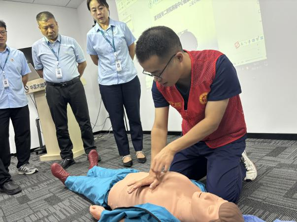 講座結(jié)束后,徐少奇醫(yī)生為大家進(jìn)行現(xiàn)場演示,拆解CPR操作的全部流程,并現(xiàn)場設(shè)置實操環(huán)節(jié),為大家進(jìn)行指導(dǎo),糾正“按壓位置錯誤”“力度不足”等常見錯誤,直至掌握正確的急救方法。演練現(xiàn)場氛圍熱烈,職工們都一一輪流進(jìn)行現(xiàn)場實際操作。