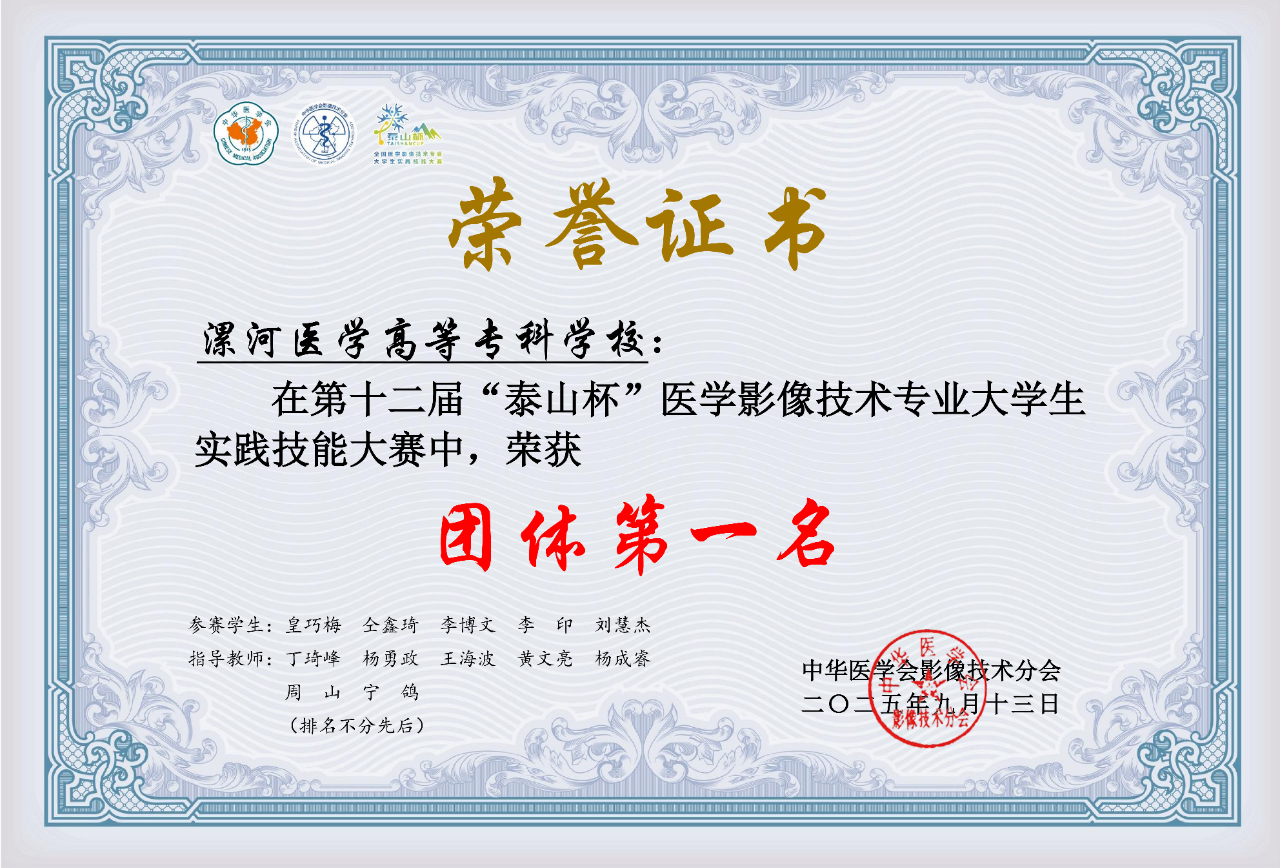 9月12日至14日,2025年第十二屆“泰山杯”全國醫(yī)學影像技術(shù)專業(yè)大學生實踐技能大賽暨第八屆醫(yī)學影像技術(shù)專業(yè)教師教學創(chuàng)新大賽在山東淄博舉辦。在本次國家級大賽中,漯河醫(yī)專二附院(漯河市骨科醫(yī)院、漯河市立醫(yī)院)在醫(yī)學影像科周山主任帶領(lǐng)下,在所有學生實踐技能比賽及教師教學比賽中均獲優(yōu)異獎項。