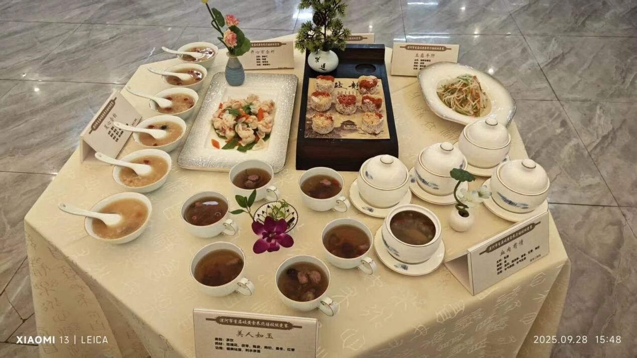 經(jīng)過激烈角逐,團(tuán)隊(duì)?wèi){借“開心百合蝦”“玉芝云糕”“玉露平肝”“血肉有情”“美人如玉”等一系列兼具養(yǎng)生功效與美味口感的藥膳作品(如圖中展示的精美藥膳,涵蓋熱菜、涼菜、面點(diǎn)、湯品、茶飲等多種類型),從眾多參賽隊(duì)伍中脫穎而出,成功斬獲團(tuán)體二等獎,與漯河技師學(xué)院共享這一榮譽(yù),充分彰顯了醫(yī)院在食養(yǎng)藥膳領(lǐng)域的綜合實(shí)力。