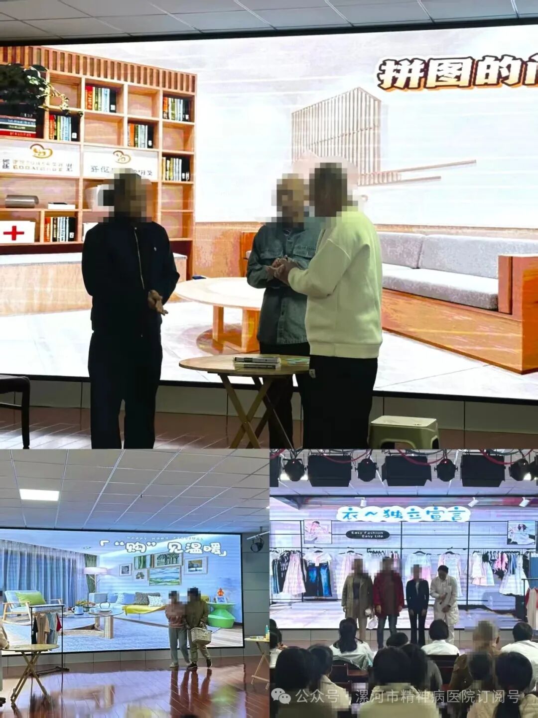 本次大賽共有來自各個病區(qū)的6支患者代表隊(duì)參賽,通過抽簽確定出場順序,各參賽隊(duì)伍圍繞大賽主題展開角逐。心身醫(yī)學(xué)科《“借”與“不借”的友好藝術(shù)》、精一科《鄰里的微光》、精四科《“購”見溫暖》、精六科《拼圖的問候》等作品中,展現(xiàn)出了精神障礙患者扎實(shí)的康復(fù)訓(xùn)練成果。評委從表達(dá)、協(xié)作、溝通技巧等進(jìn)行綜合評分,分別評出一等獎、二等獎、三等級及優(yōu)秀獎。