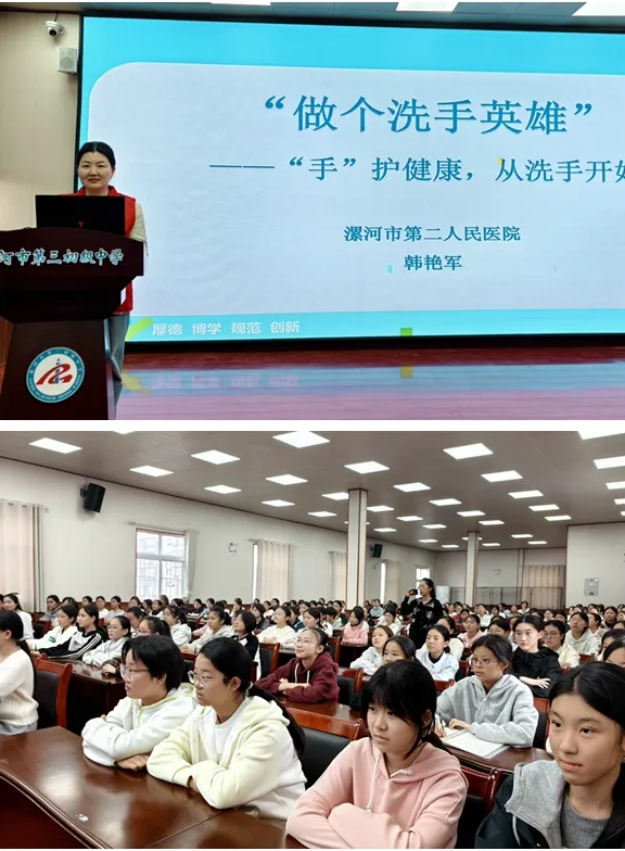 此外,市二院感控辦工作人員專程走進市第三初級中學,為學生們帶來了一場別開生面的手衛(wèi)生知識講座。工作人員以“手”護健康為切入點,通過專題講座、播放宣傳視頻、講解洗手重要性、演示“七步洗手法”等環(huán)節(jié),深入淺出地向同學們闡述了洗手這一最簡單、經(jīng)濟且有效的健康守護方法,有效提升了青少年群體的手衛(wèi)生知識與自我防護能力。