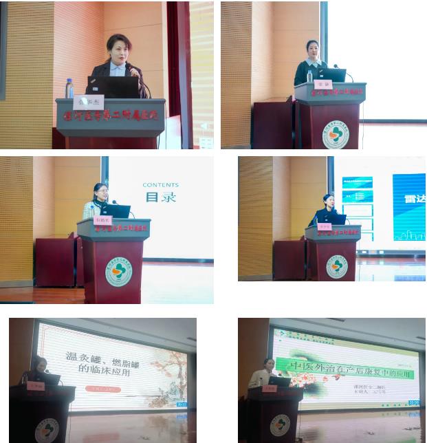 授課環(huán)節(jié),漯河醫(yī)專(zhuān)二附院康復(fù)科主任張靜、漯河市中醫(yī)院婦產(chǎn)科主治中醫(yī)師位路其,高級(jí)講師李少瑩,漯河醫(yī)專(zhuān)二附院婦產(chǎn)科助產(chǎn)士王夢(mèng)麗、婦產(chǎn)科副主任中醫(yī)師王偉偉,分別就《產(chǎn)后病的中醫(yī)治療》《中藥外治法在產(chǎn)后腹痛中的臨床應(yīng)用》《雷達(dá)技術(shù)在盆底診療中的應(yīng)用》《溫灸罐與燃脂罐臨床應(yīng)用》《中醫(yī)外治在產(chǎn)后康復(fù)中的臨床應(yīng)用》等內(nèi)容進(jìn)行分享。