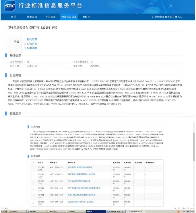 國家衛(wèi)生健康委員會近日正式發(fā)布《國衛(wèi)通〔2025〕9號》公告,公布并備案了16項(xiàng)推薦性衛(wèi)生行業(yè)標(biāo)準(zhǔn),其中14項(xiàng)重點(diǎn)圍繞醫(yī)院感染控制領(lǐng)域。該批標(biāo)準(zhǔn)將于2026年2月1日起全面實(shí)施,同時(shí),4項(xiàng)修訂前的舊版標(biāo)準(zhǔn)同步廢止。新標(biāo)準(zhǔn)的發(fā)布實(shí)施,對進(jìn)一步規(guī)范醫(yī)院感染管理流程、提升醫(yī)療質(zhì)量安全水平具有重要意義。