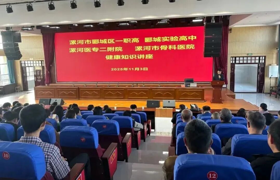 為提升教師群體健康管理意識,筑牢校園健康防護網(wǎng),醫(yī)院組織內(nèi)分泌、老年醫(yī)學科、精神心理科醫(yī)療專家于11月3日走進郾城區(qū)漯河市郾城實驗高中,為該校300余名教職工進行健康知識講座,用專業(yè)醫(yī)學知識為校園教師的健康保駕護航。