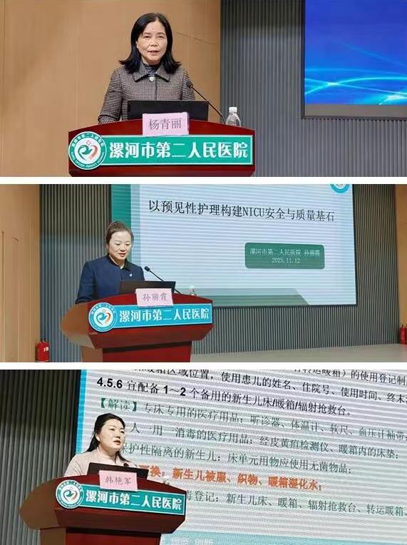 學(xué)術(shù)交流環(huán)節(jié),市中心醫(yī)院NICU護(hù)士長(zhǎng)楊青麗以《新生兒低血糖臨床規(guī)范管理專家共識(shí)》(2021)為題,系統(tǒng)闡述了新生兒低血糖的“預(yù)防、篩查、干預(yù)、隨訪”四個(gè)重點(diǎn);市二院護(hù)理部副主任孫麗霞分享了《以預(yù)見性護(hù)理構(gòu)建NICU安全與質(zhì)量基石》,點(diǎn)明預(yù)見性護(hù)理是NICU生命安全保障的基石,也是質(zhì)量持續(xù)提升的第一道防線;市二院感控辦副主任韓艷軍以《新生兒病區(qū)醫(yī)院感染預(yù)防與控制標(biāo)準(zhǔn)》進(jìn)行了交流,闡明要嚴(yán)守感控標(biāo)準(zhǔn),筑牢安全防線,保障每一位新生兒的健康與安全;市婦幼保健院兒科護(hù)士長(zhǎng)鄭文韜以《高危兒靜脈通路的合理選擇》展開,講解了高危兒靜脈通路的選擇,核心在于基于個(gè)體評(píng)估,實(shí)現(xiàn)安全與療效的最佳平衡;市二院靜療專科護(hù)士李艷結(jié)合《兒童靜療常見并發(fā)癥的預(yù)防及處理》,提出兒童靜療安全,核心在于以預(yù)防為首;市二院傷口造口??谱o(hù)士馬美華分享了《兒童常見皮膚護(hù)理與管理》,闡述嚴(yán)守預(yù)防底線,踐行精細(xì)照護(hù),是守護(hù)新生兒稚嫩肌膚、避免醫(yī)源性皮膚損傷的根本之道。