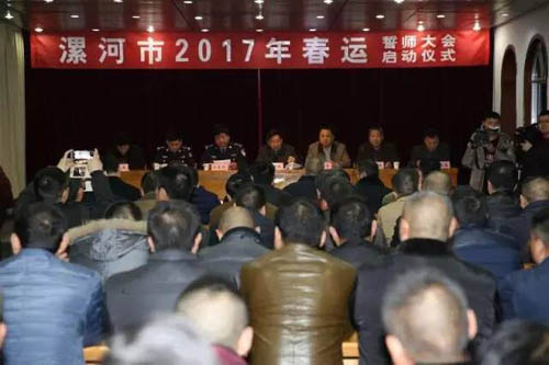 為全力做好春運(yùn)道路交通安全管理工作,預(yù)防重特大交通事故,確保“兩節(jié)”平穩(wěn)度過,1月12日晚,漯河市舉行2017年春運(yùn)交通安全誓師大會(huì)。