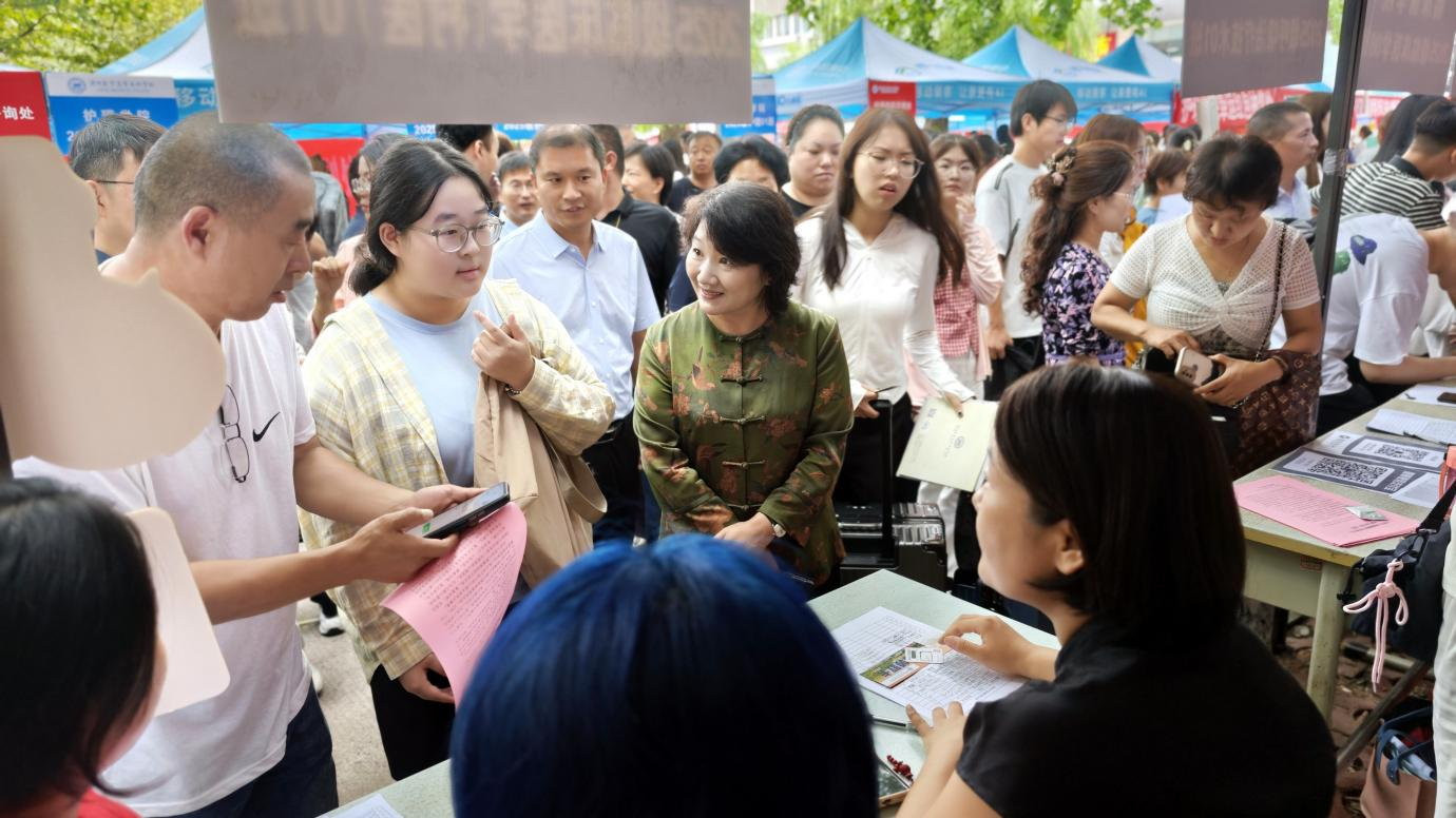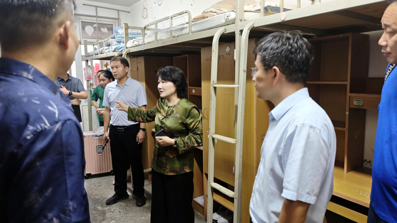 隨后,張祎捷一行走訪了源匯校區(qū)臨床醫(yī)學(xué)院、口腔醫(yī)學(xué)院、護(hù)理學(xué)院、藥學(xué)院、中醫(yī)學(xué)院、醫(yī)技學(xué)院迎新點(diǎn),詳細(xì)了解報(bào)到情況,仔細(xì)詢問新生報(bào)到流程,注冊(cè)進(jìn)度和志愿服務(wù)安排。每到一處,她都與新生、家長(zhǎng)及工作人員深入交流。在學(xué)生宿舍區(qū),她重點(diǎn)查看了生活服務(wù)保障措施,認(rèn)真傾聽學(xué)生初入校園的感受,鼓勵(lì)他們積極適應(yīng)新環(huán)境、融入大集體,盡快以飽滿的狀態(tài)投入大學(xué)生活,并感謝家長(zhǎng)對(duì)學(xué)校的信任與托付。此外,張祎捷一行還前往校區(qū)食堂、超市、志愿服務(wù)點(diǎn),檢查餐飲衛(wèi)生、商品供應(yīng)、志愿服務(wù)等情況,確保新生在校生活需求得到全方位保障。