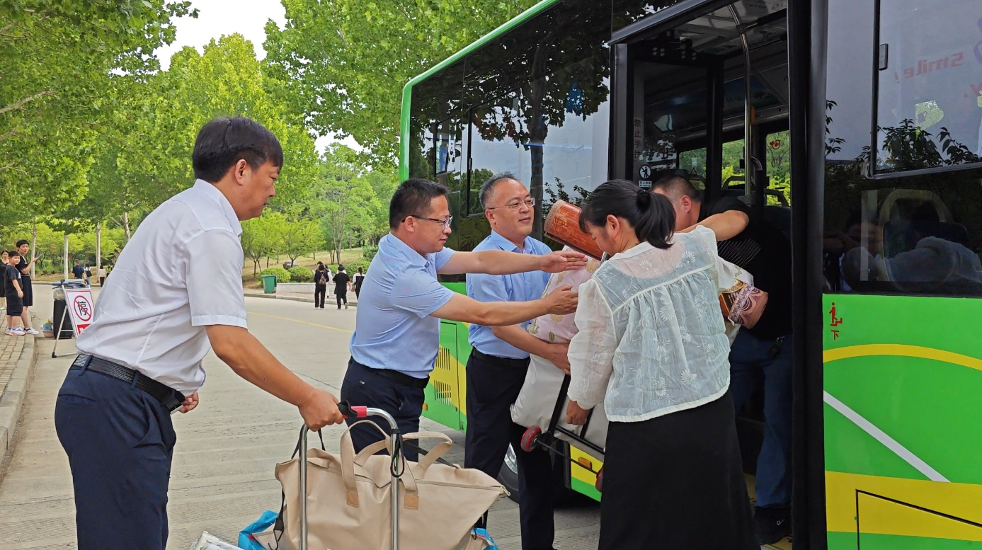 校黨委副書記邊曉峰,副校長(zhǎng)馬永超、蘭濤在接站點(diǎn)