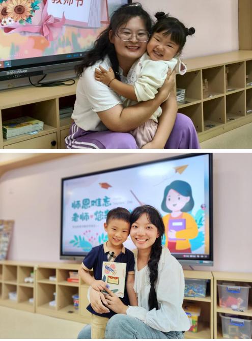小班教室里,一場(chǎng)“愛(ài)的抱抱”活動(dòng)溫馨上演。孩子們雖然剛?cè)雸@一周多,但在老師的引導(dǎo)下,給身邊的老師一個(gè)大大的擁抱,用軟糯的聲音奶聲奶氣地說(shuō)“老師,我愛(ài)你”“節(jié)日快樂(lè)”。