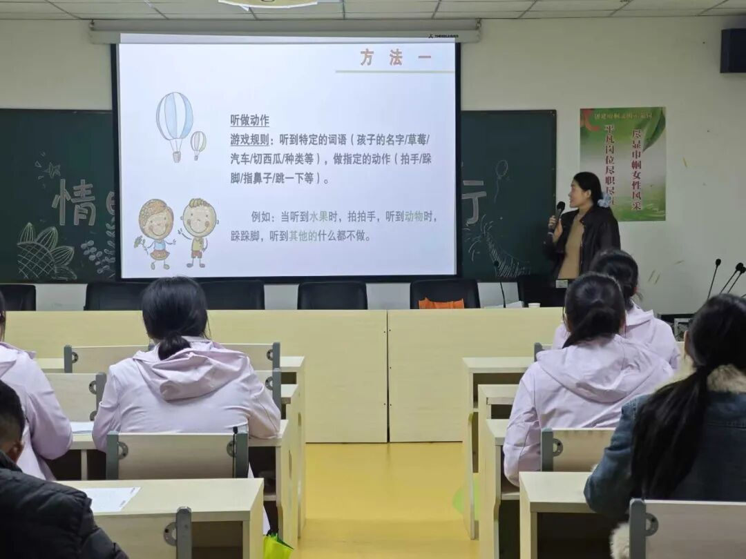 培訓伊始,楊玉婷老師首先通俗講解:“注意力是孩子集中感官與心思做事的能力,對院內孩子而言,更是建立信任、融入集體的關鍵。”她指出,兒童注意力不專注的常見表現包括:聽指令 “左耳進右耳出”、桌面活動 5 分鐘難堅持、眼神游離不愿參與集體,且易因分心出現 “學不會、聽不懂” 問題,強調 “這并非故意不聽話,而是需要專業(yè)引導”。