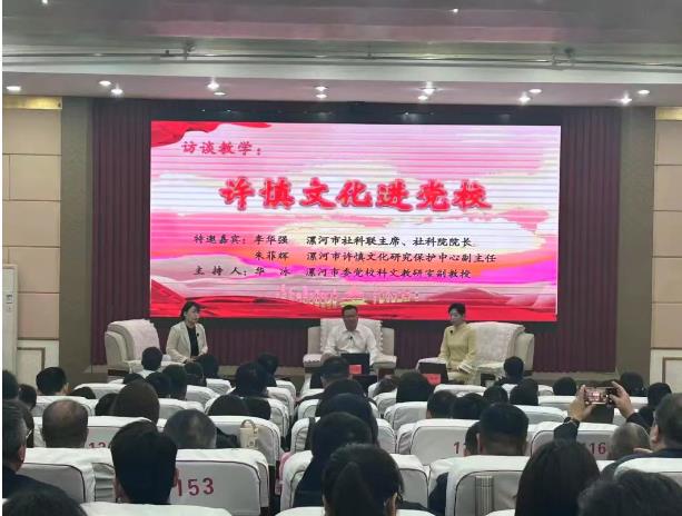 為深入學(xué)習(xí)習(xí)近平文化思想,貫徹落實中央和省委、市委關(guān)于文化建設(shè)的工作部署,推動我市“四大本土文化”創(chuàng)造性轉(zhuǎn)化、創(chuàng)新性發(fā)展,11月6日上午,市社科聯(lián)主席、社科院院長李華強,市許慎文化研究保護中心副主任朱菲輝受邀走進黨校秋季學(xué)期第二期主體班課堂,開展了“許慎文化進黨校”專題訪談教學(xué),市委黨校科技文化教研室副主任、副教授華冰主持。