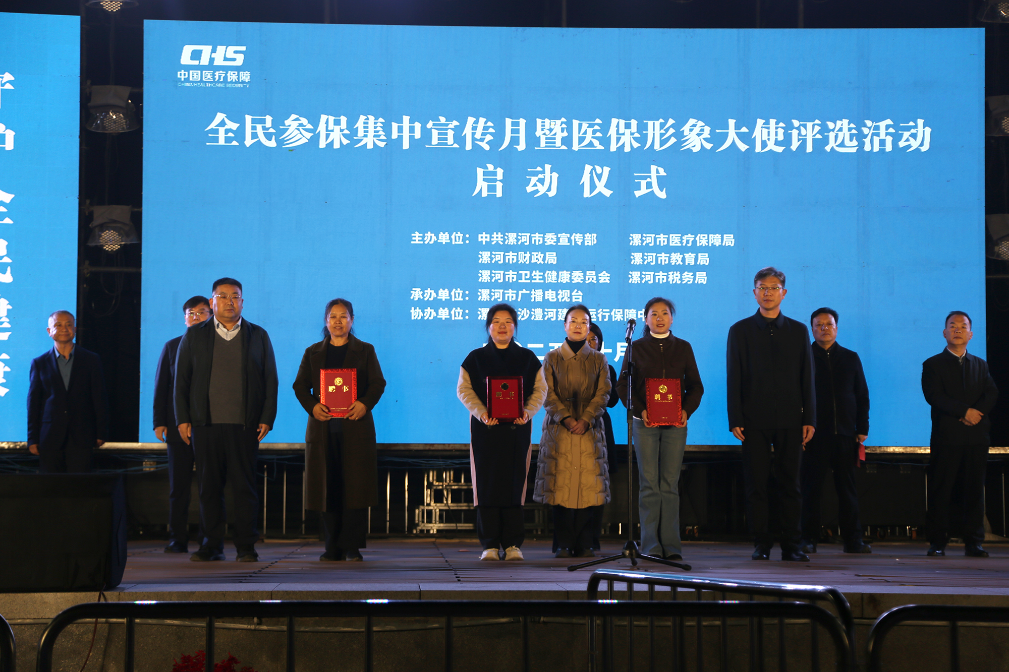 金秋送爽,民生暖心。 10 月 26 日晚,紅楓廣場(chǎng)燈光璀璨、人氣匯聚,“中國(guó)醫(yī)保?一生守護(hù)”2025 年漯河市全民參保集中宣傳月暨醫(yī)保形象大使評(píng)選活動(dòng)啟動(dòng)儀式在此隆重舉行。市政府副市長(zhǎng)宋琰琰,市委宣傳部副部長(zhǎng)毛志凌,市醫(yī)保局局長(zhǎng)李志輝,市衛(wèi)健委主任楊躍偉,市廣播電視臺(tái)黨組書記黃衛(wèi)平,市沙澧河建設(shè)保障中心主任薛德民等領(lǐng)導(dǎo)出席儀式,與現(xiàn)場(chǎng)及屏幕前的市民朋友們共同見證這一關(guān)乎民生福祉的重要時(shí)刻。