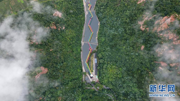 8月15日拍攝的紫金山景區(qū)內(nèi)的旅游設(shè)施(無人機(jī)照片)。 當(dāng)日,位于河北省邢臺市西部太行山脈的紫金山景區(qū)云霧彌漫,美景如畫。 新華社記者 牟宇 攝