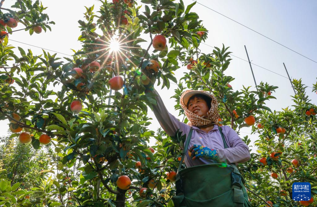 8月7日,果農(nóng)在山東省東營(yíng)市廣饒縣大王鎮(zhèn)的一處蘋(píng)果種植基地內(nèi)采摘蘋(píng)果。