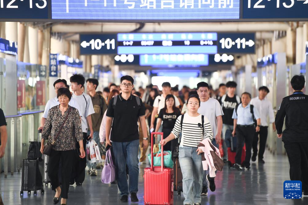10月7日,旅客從南京火車站出行。